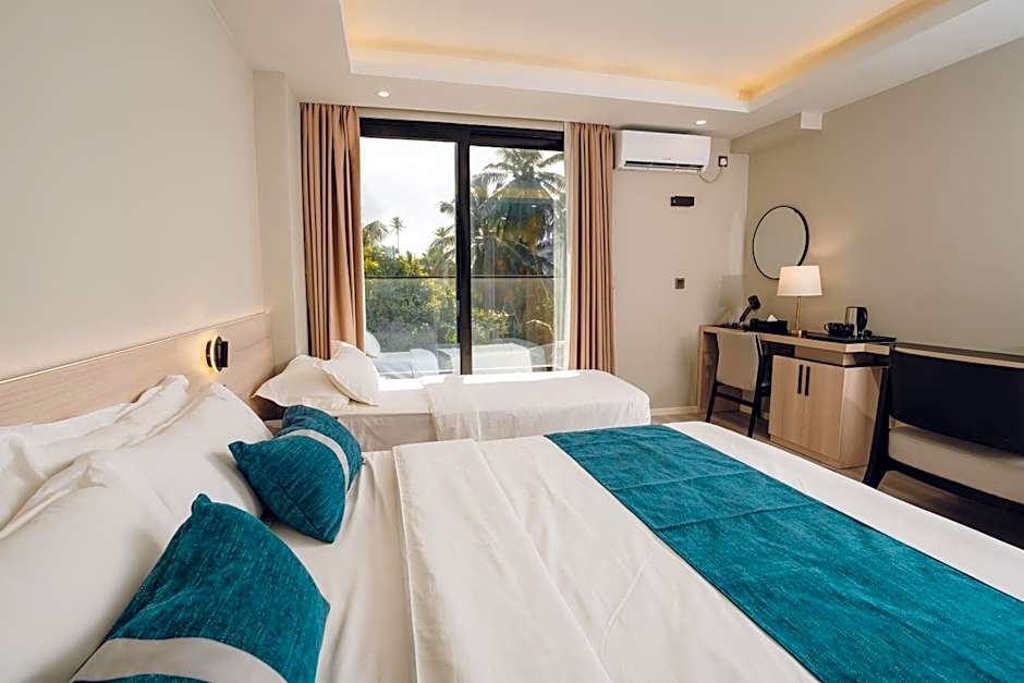 Kick back on the beachfront in Fuvahmulah and savor the on-site dining scene. Raskuri Rastaurant serves Indian, Italian, Mediterranean, Local, and International cuisines, ensuring something tasty for every mood after a day of island exploring. Breakfast is offered to start mornings on the right foot, and the overall vibe invites sun-soaked relaxation along the water.